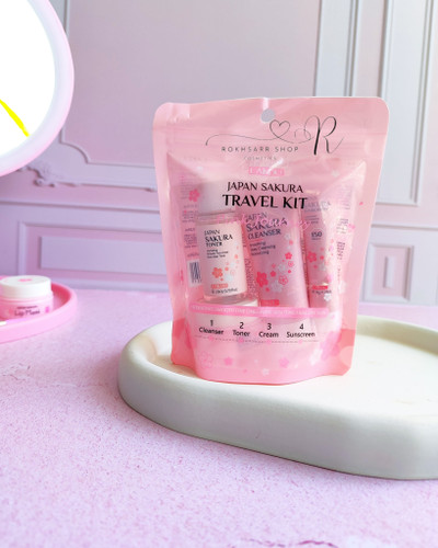 کیت مسافرتی 4 عددی مراقبت پوستی شکوفه ژاپنی لایکوناموجود کرم مرطوب کننده ضد چروک پریلا پلی پپتاید بیوآکواناموجود