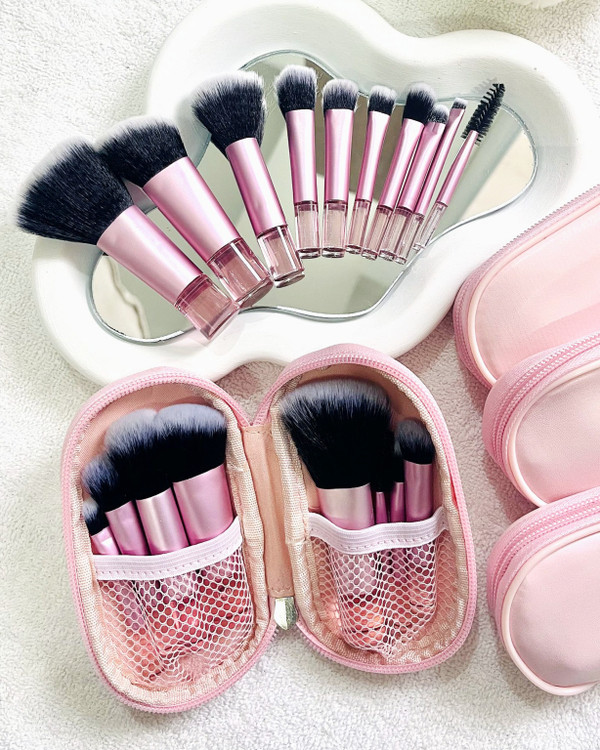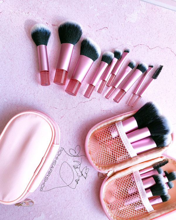 ۱۰ عدد براش پر تراکم و مینی به همراه کیف داره به راحتی میتونی با خودت مسافرت و بیرون ببری 😍💖