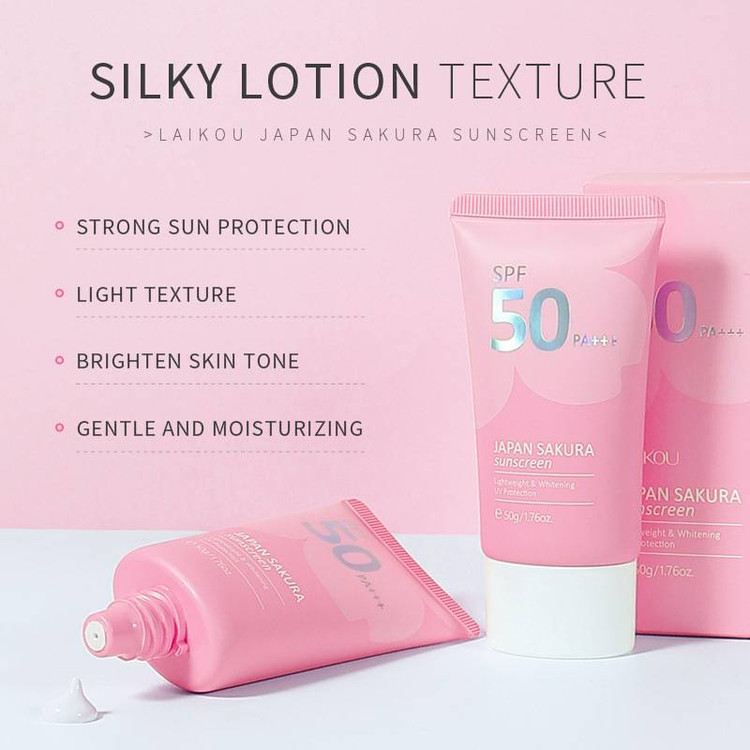 💮ضد آفتاب LAIKOU JAPAN SAKURA حاوی عصاره گل Prunus Lannesiana می تواند رنگ پوست را روشن و پوست را سفت کند.