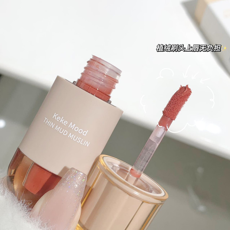✨رژ لب مایع مخملی مات Keke Mood مدل Thin Mud Muslinجلوه مخملی و نرم به لب میدهد و با بافت مایعی که دارد به لب حجم میبخشد و از خشک شدن پوست لب جلوگیری میکند.