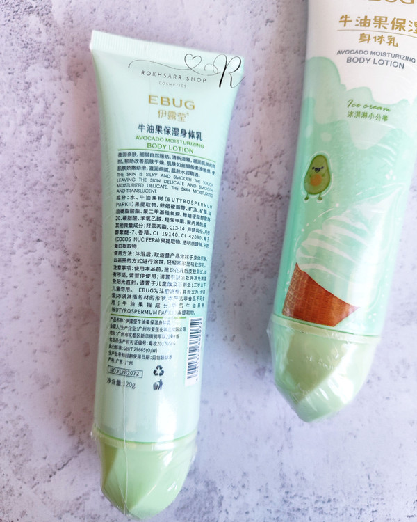 ⭕لوسیون بدن آواکادو ebug+اپلیکاتور قیف خامه ای