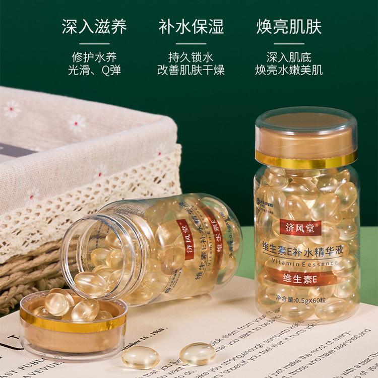 قوطی 60 تایی کپسول ویتامین E فیلرفوری ضد چروک و روشن کننده PCPIC