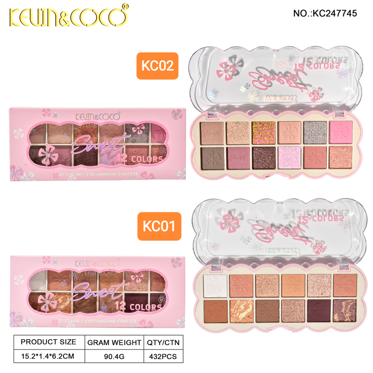 پالت سایه چشم پودری 12 رنگ Kevin & Coco مدل Sweet